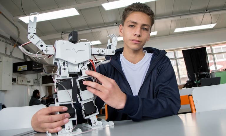 La Robótica es un campo que combina la ingeniería, la informática y la mecánica para crear e interactuar. Este centro de interés permite a los participantes desarrollar proyectos tecnológicos, aprender sobre programación y diseño de sistemas automáticos, y explorar el futuro de la inteligencia artificial y la automatización.